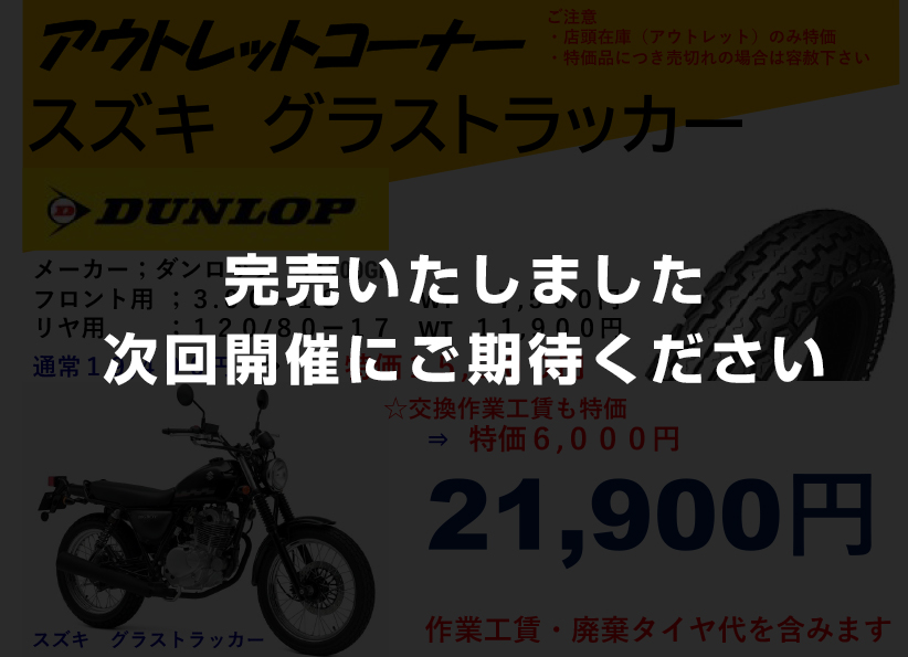 ハンターカブ、クロスカブのタイヤ交換ならお買い得な当店で